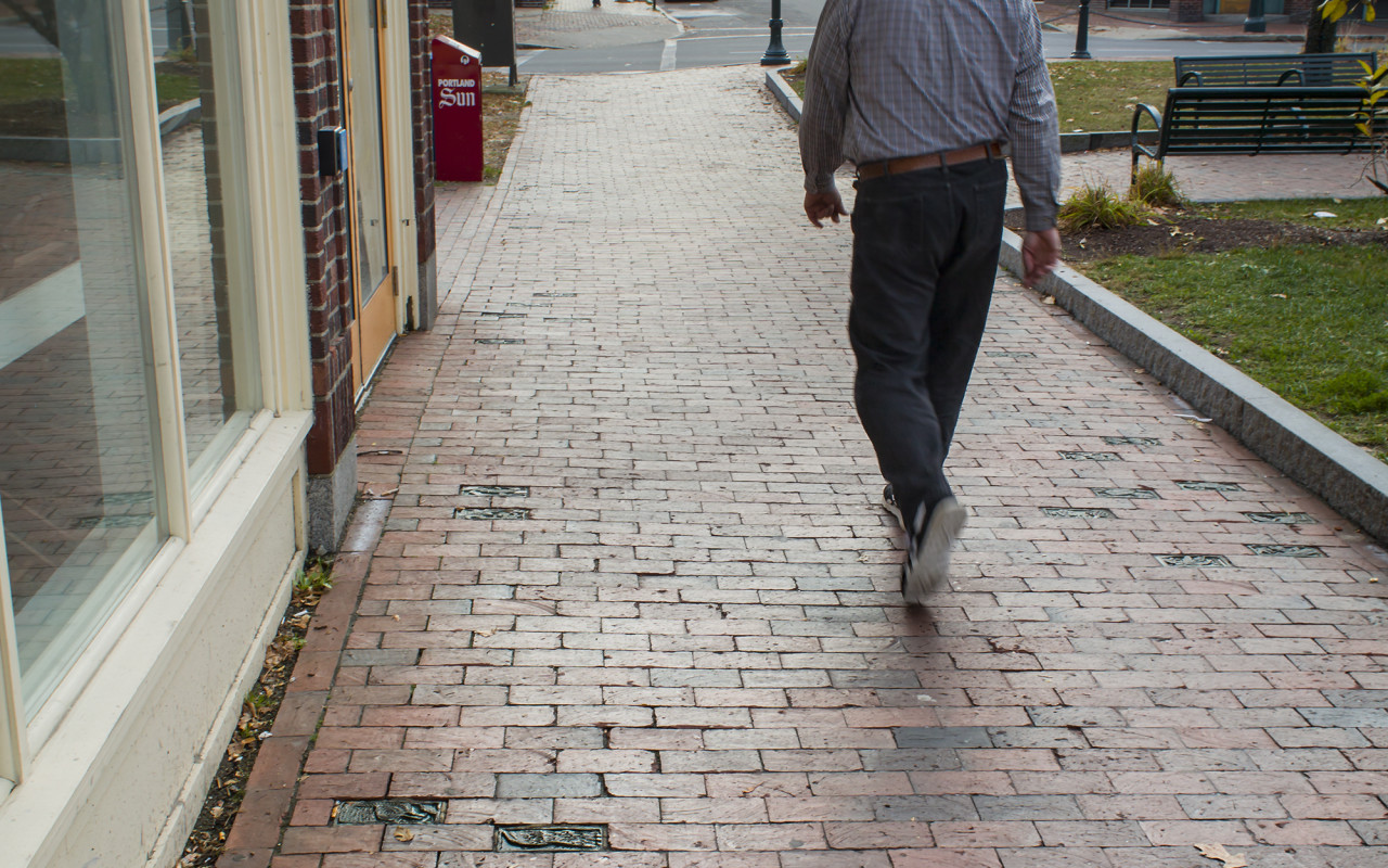 Art Underfoot was initiated as a Community Art Works project by mayor Jill Duson in 2005. The Public Art Committee created the design theme–reflecting what might be found along the ground that is unique to Portland, such as images of leaves, flowers, acorns, shells, insects, feathers, etc. The heavily traveled Longfellow Square sidewalks were chosen as the site for this collaborative piece. .
