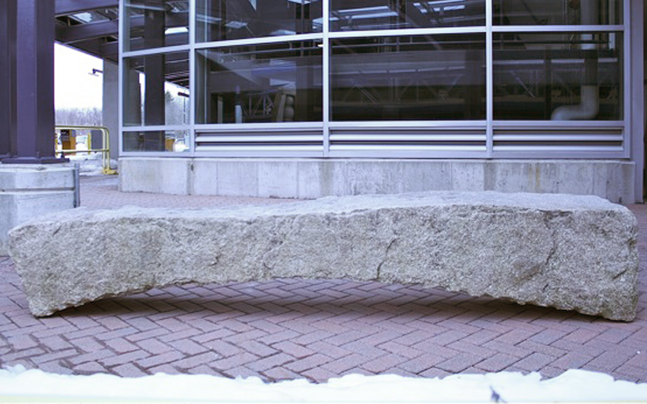 The Beach Pea Bench, by Jesse Salisbury, was split and peeled away from an eight-ton natural-faced slab of Jonesborough granite stone form using hand-forged steel chisels and wedges. The rest of the eight-ton stone was used to make the accompanying sculpture, Beach Pea. Salisbury was very conscious of the relationships between positive and negative forms when he made these pieces.