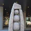 Beach Pea, a sculpture by Jesse Salisbury, is a still life of geological movement split and shaped from one eight-ton natural-faced slab of Jonesborough granite. The seed shaped form was split into curves and internal blocks using hand-forged steel chisels and wedges. Mindful of the relationships between positive and negative forms, the blocks were carved and polished down to mimic beach rocks. The process is similar to the natural forces but controlled, and formed much faster than geologic time. The title comes from the wild Beach Pea, which grows by the seashore among the naturally rounded rocks shaped by time, wind and waves.