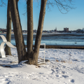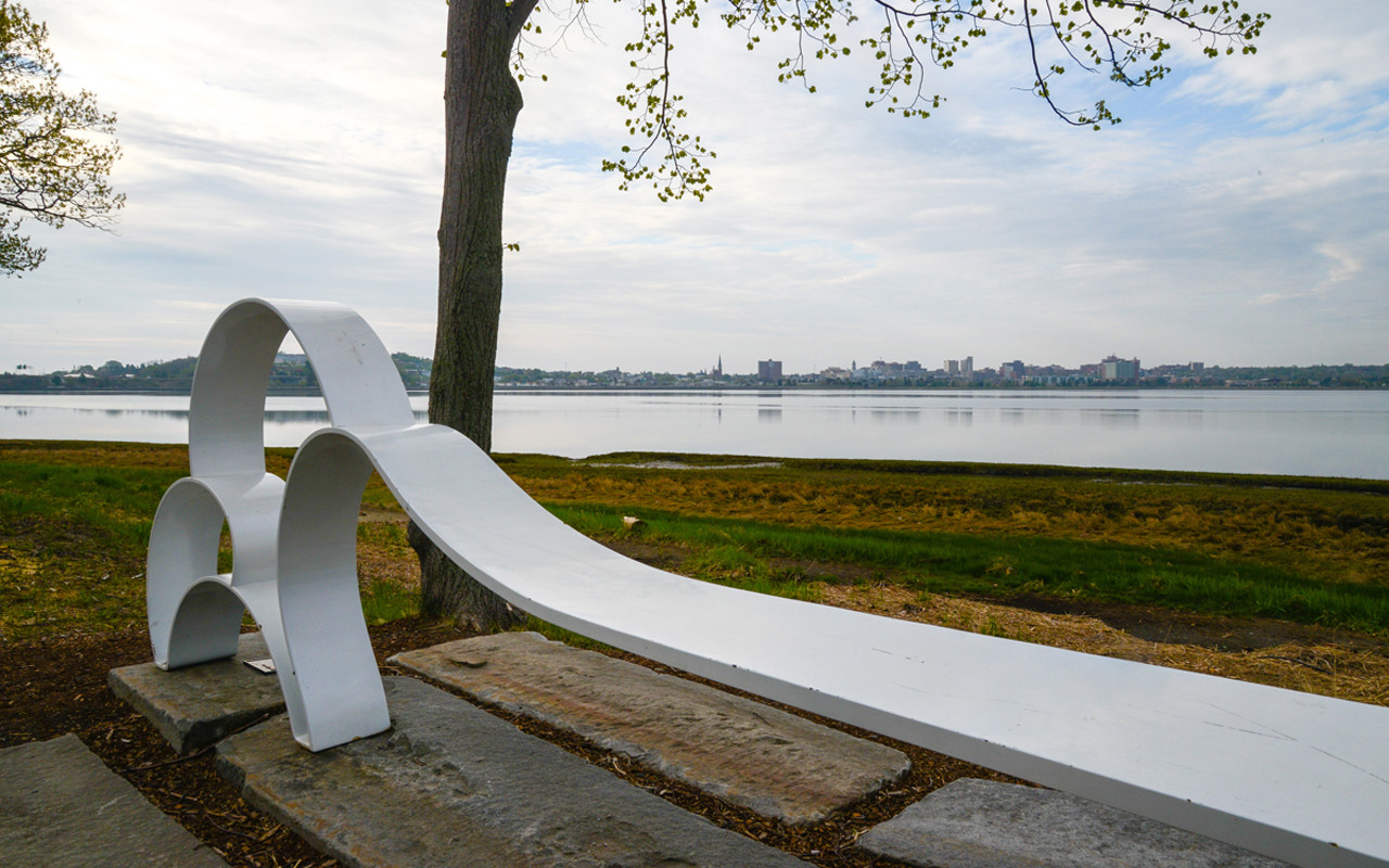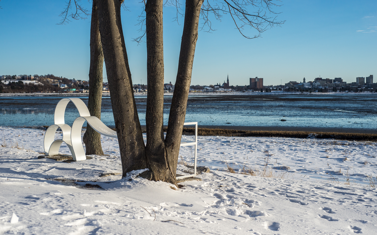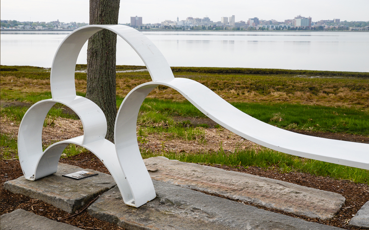 Winslow Park was for many years the home of a carved wooden sculpture, Milkweed Pod (1975), by Maine sculptor Clark Fitzgerald. Carved from a Deering Oaks Park log, it was installed as a temporary piece in the park. It became so popular, however, it was eventually moved to Winslow Park and became a part of the City’s permanent public art collection. The sculpture gradually rotted and eventually blew down in a strong wind. The Portland Public Art Committee, instead of pursuing a new commission, decided to replace it with an existing sculpture by a Maine-based artist, and Beer’s work was chosen.