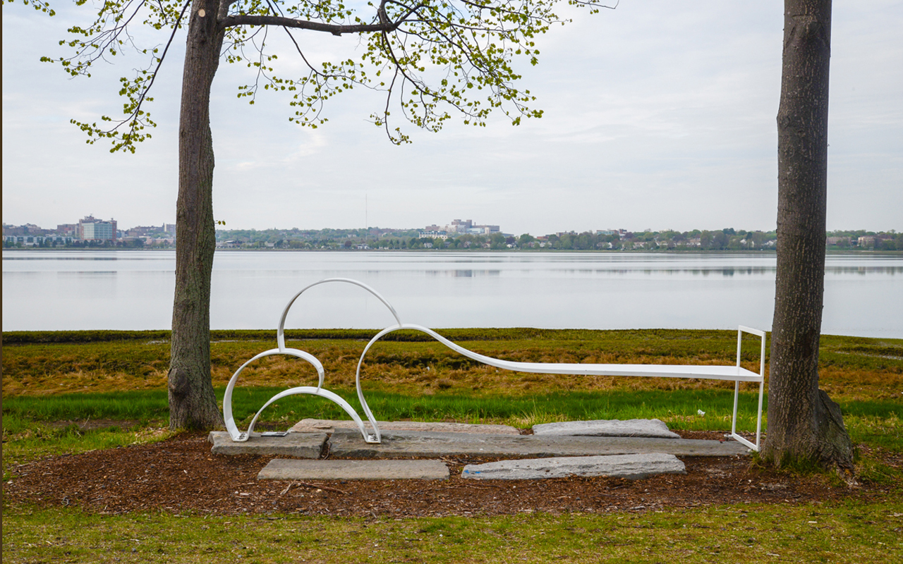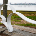 Vivian Beer was chosen to place her sculpture, Rustle Diptych II, in Winslow Park, at the corner of Baxter Boulevard and Temple Street in 2008. She contributed Cloud Couch as a companion piece for Rustle Diptych II. Cloud Couch is white painted steel sculptural seating and evokes both clouds and waves.
