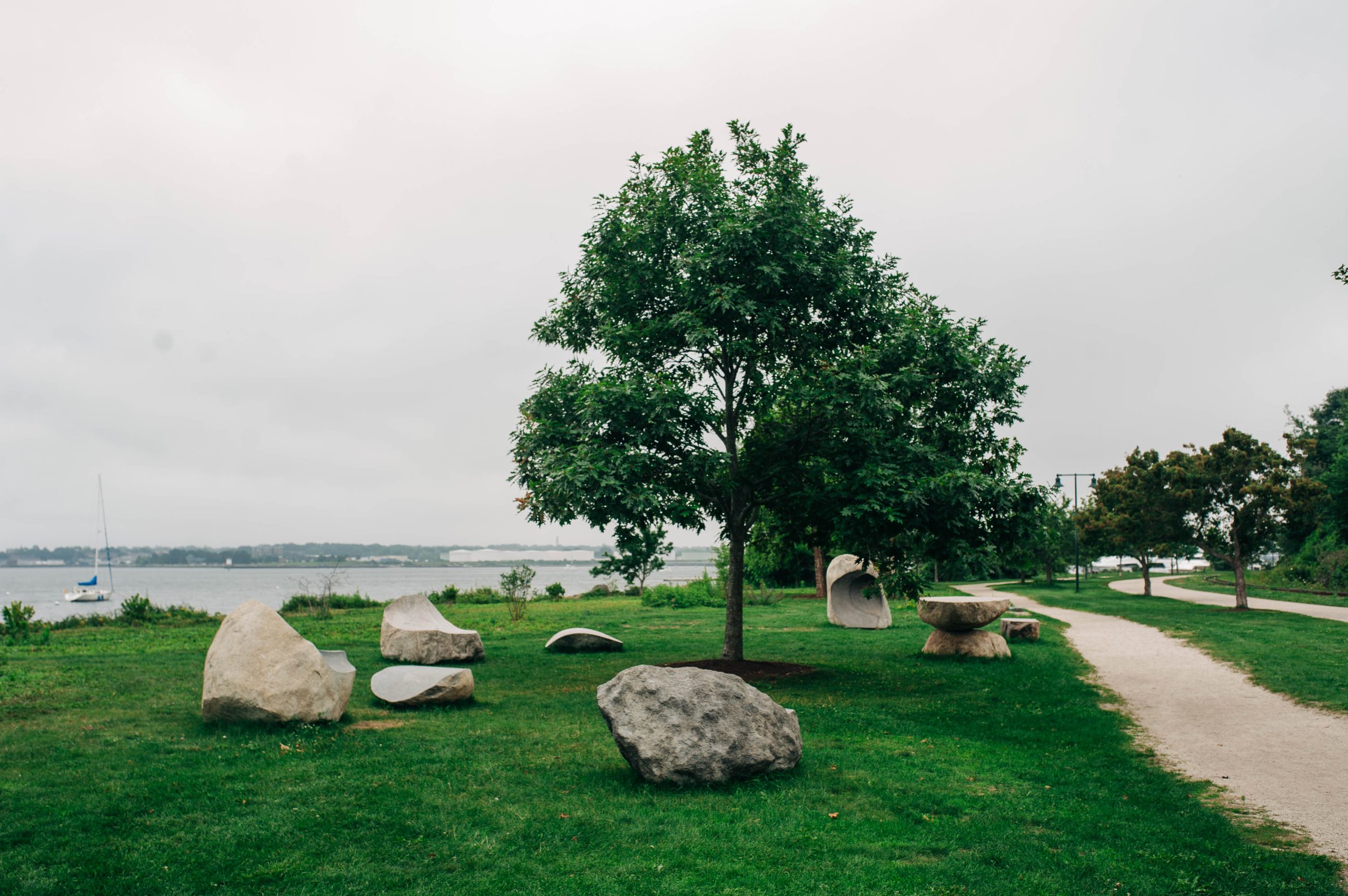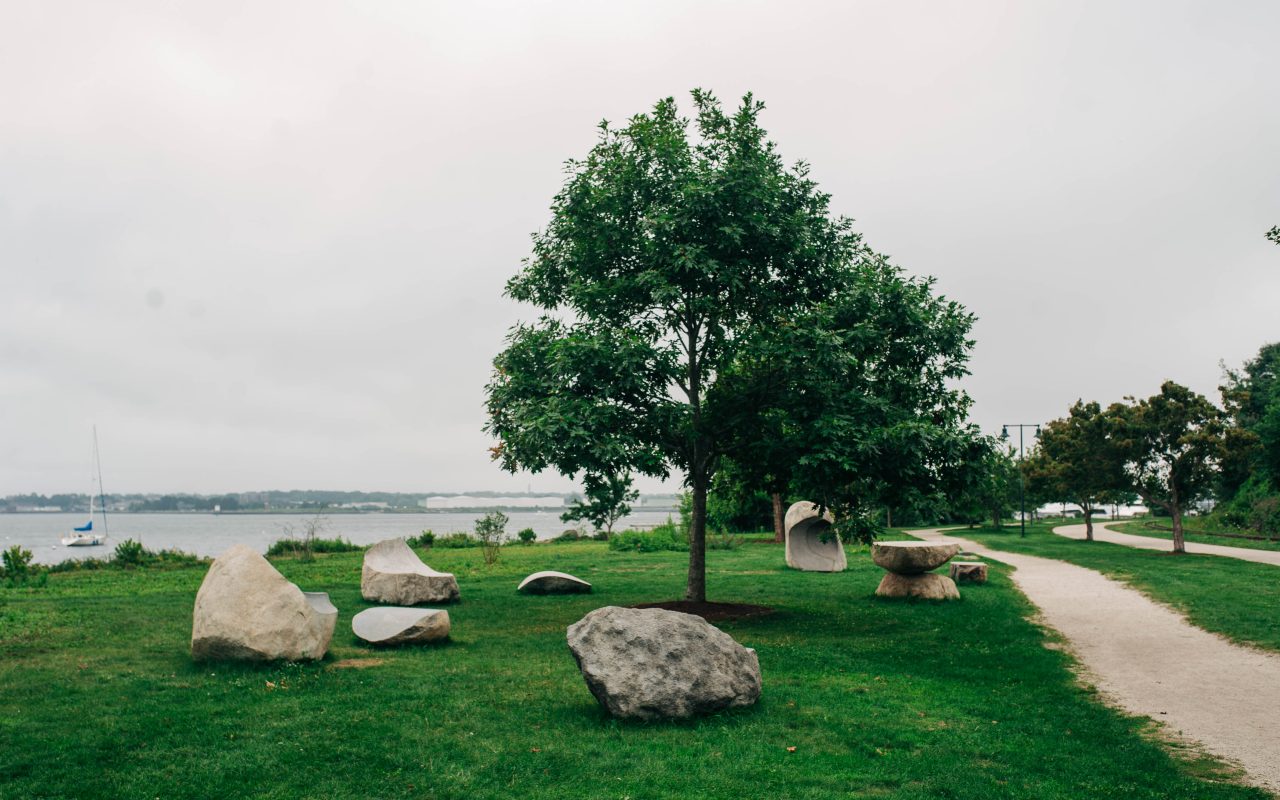 Gathering Stones is a collection of six large sculpted stone groupings by Maine artist Jesse Salisbury, arranged for interaction and social gathering. The artwork is located at Fish Point along Portland’s Eastern Promenade Trail and was originally commissioned as a temporary art installation by TEMPOArt, a non-profit arts organization based in Portland, Maine. The artwork was later acquired by the Portland Public Art Committee to be included in the City’s permanent collection in 2022.