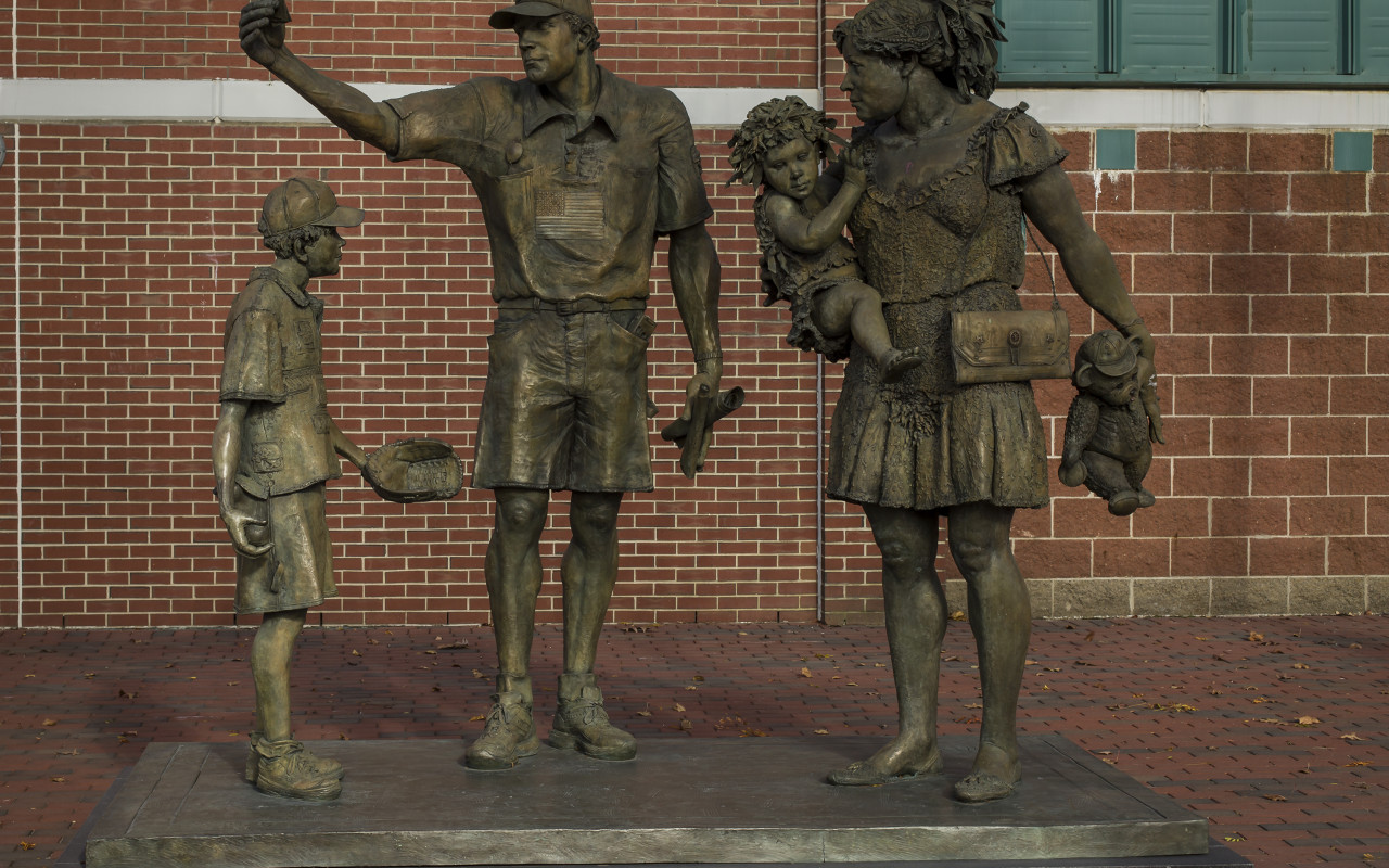 The Hadlock Field Family sculpture was a gift from Daniel Burke, owner of the Portland Sea Dogs, and his wife, Bunny. They commissioned artist Rhoda Sherbell to create a sculpture that depicted a family going to a baseball game.