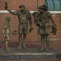 Ms. Sherbell was injured twice during the fabrication of this statue. She was hit with a foul ball while taking source photographs at Sea Dogs game. She also received a broken rib while working on the original clay sculpture when the little girl (weighing 300 lbs) fell on her.