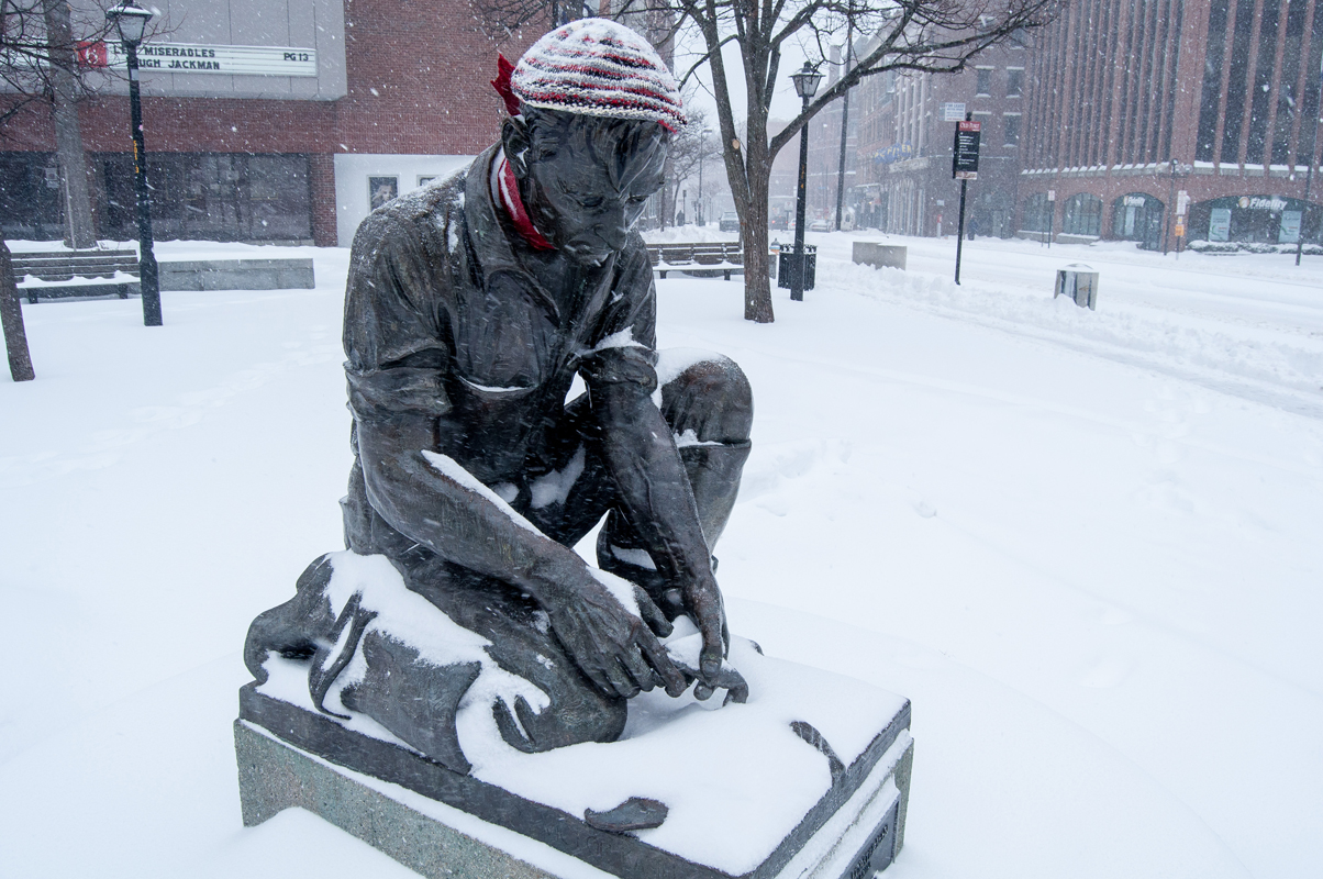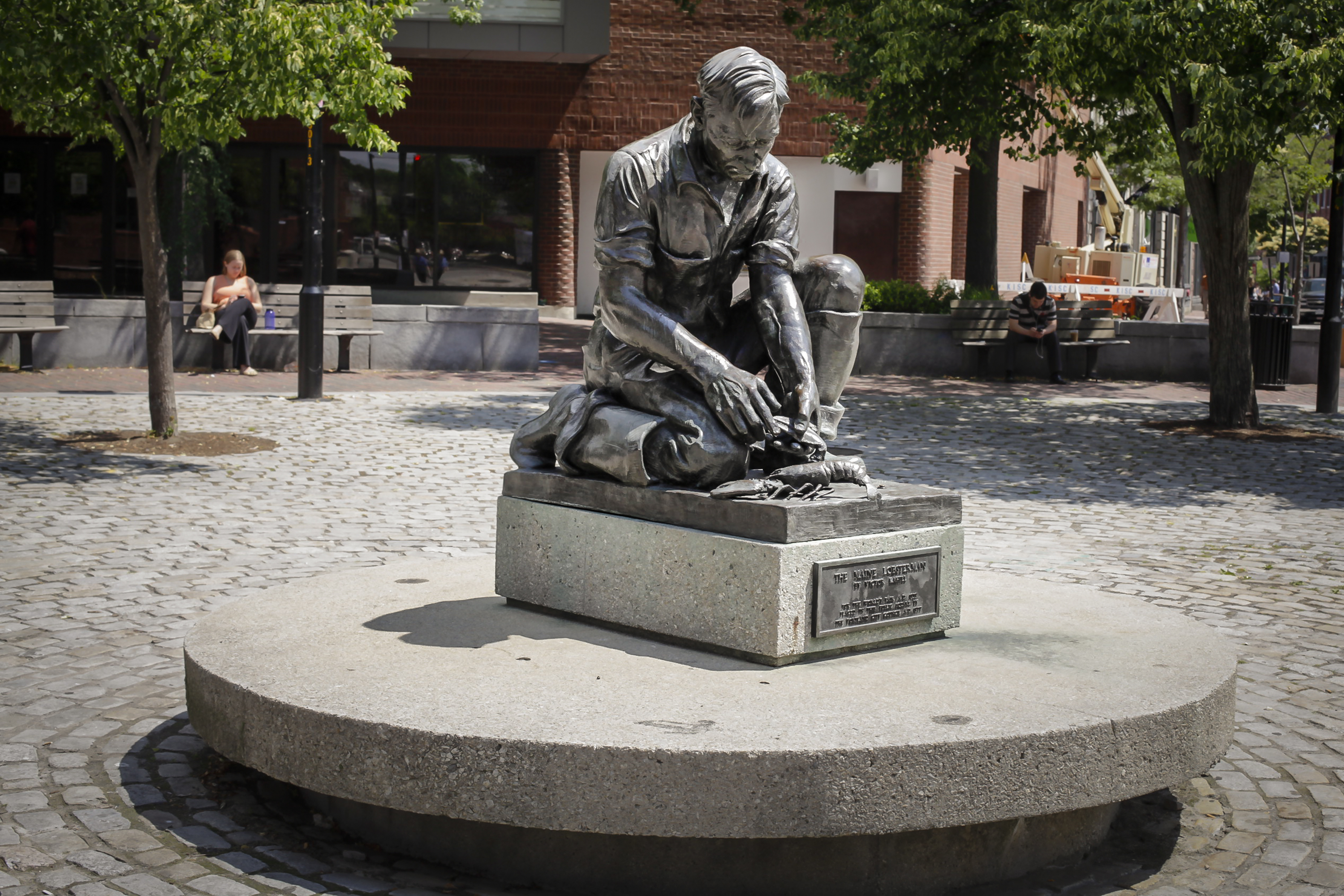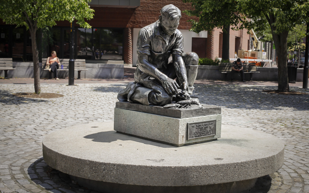The Maine Lobsterman epitomizes the spirit of the Pine Tree State, embodying its fierce independence and its historic ties to the sea. The figure is a combination of physical power and well-seasoned finesse. His strength towers not above but among us. The sculpture is a standout work – handsome and well composed. Moreover, the subject perfectly underscores Portland’s role as Maine’s leading city and helps this well-sited work deliver a fantastic sense of place.