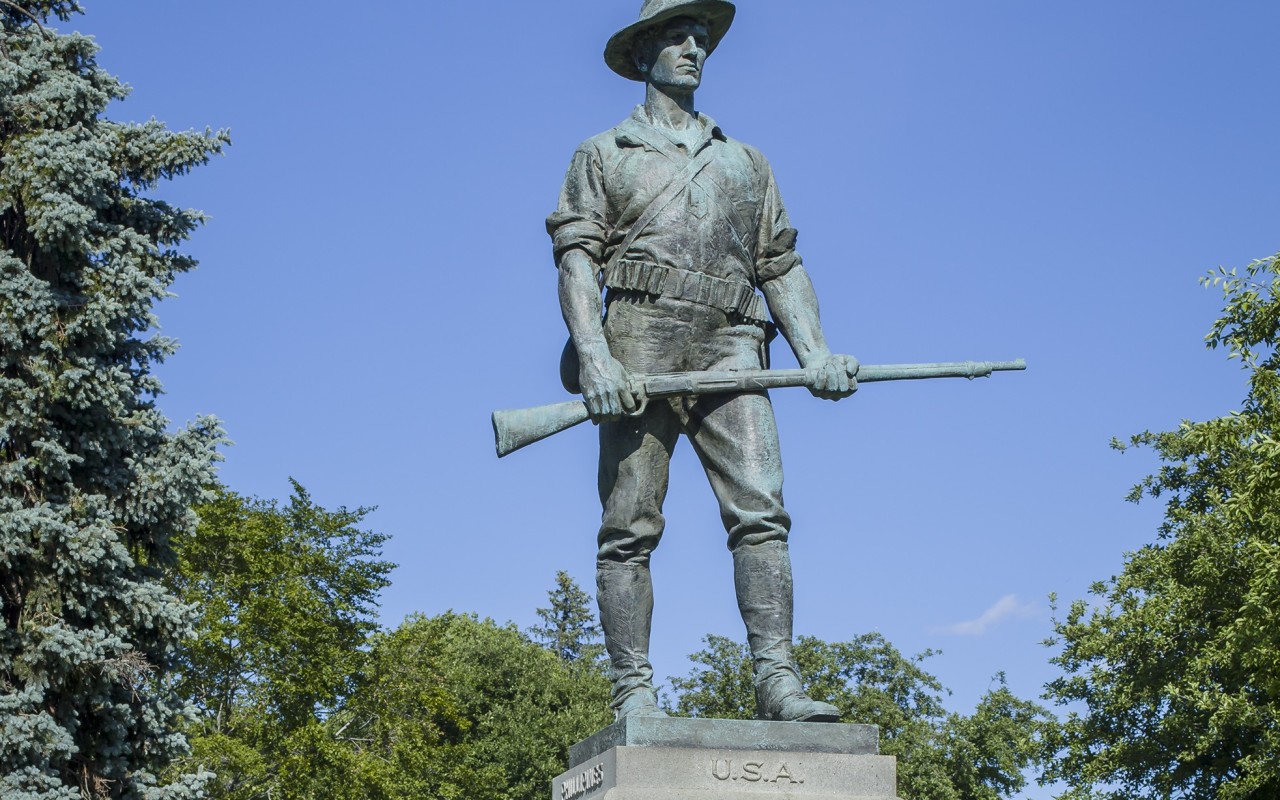 The Hiker is a Spanish War Memorial statue in Deering Oaks Park, designed in 1906 by Theo Alice Ruggles Kitson and placed in the Oaks in May 1924, likely by the United States War Veterans (USWV). The statue commemorates the American soldiers who fought in the Spanish-American War, the Boxer Rebellion and the Filipino-American War. The first version of it was made for the University of Minnesota in 1906, but at least 50 copies were made after the Gorham Manufacturing Company of Providence, Rhode Island bought the rights to the sculpture in 1921 The Hiker depicts a soldier standing in the battlefield.
