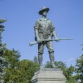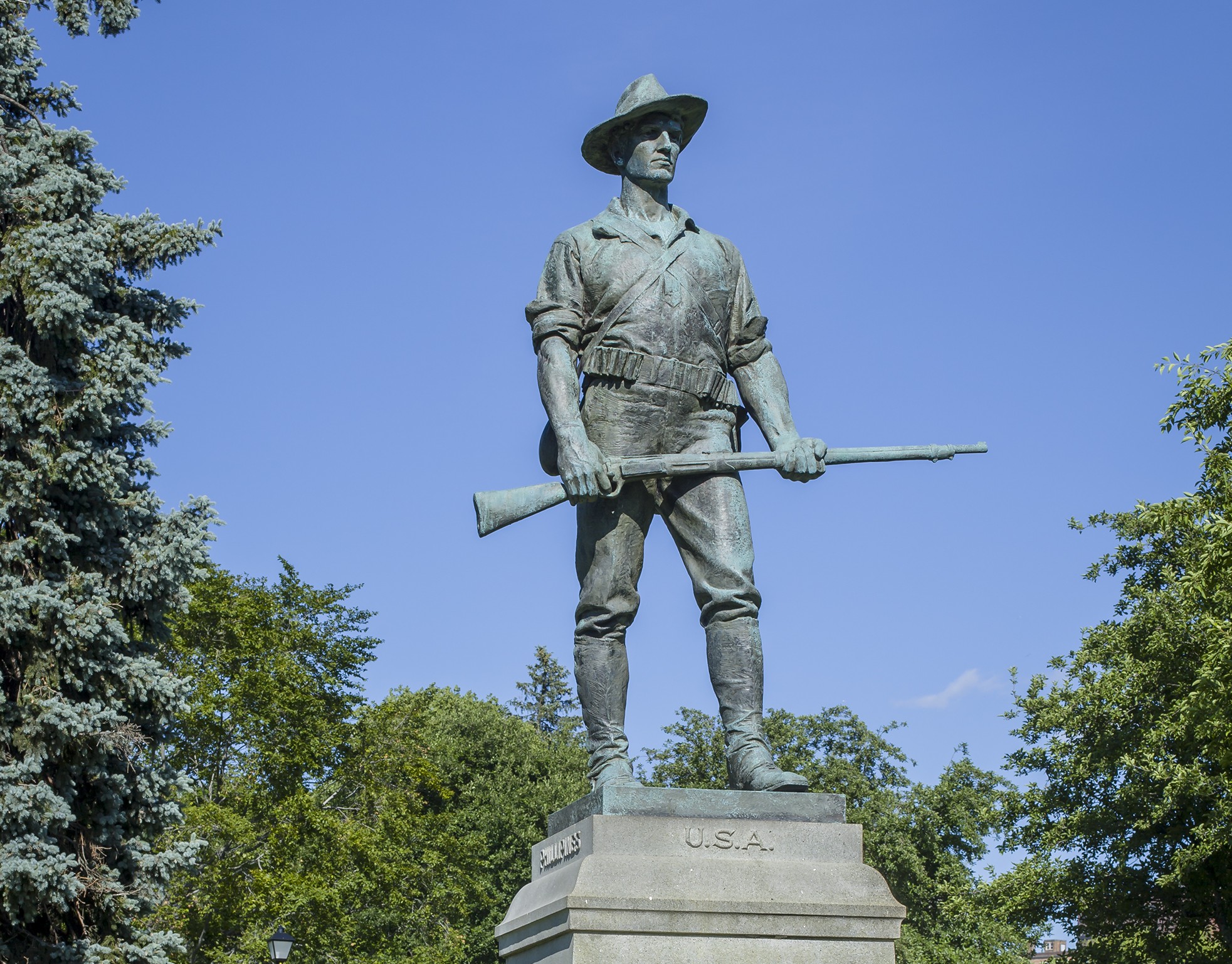 The Hiker is a Spanish War Memorial statue in Deering Oaks Park, designed in 1906 by Theo Alice Ruggles Kitson and placed in the Oaks in May 1924, likely by the United States War Veterans (USWV). The statue commemorates the American soldiers who fought in the Spanish-American War, the Boxer Rebellion and the Filipino-American War. The first version of it was made for the University of Minnesota in 1906, but at least 50 copies were made after the Gorham Manufacturing Company of Providence, Rhode Island bought the rights to the sculpture in 1921 The Hiker depicts a soldier standing in the battlefield.